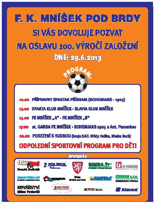Fotbalový oddíl F.K Mníšek pod Brdy si Vás dovoluje pozvat