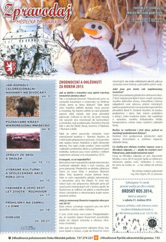První letošní číslo Zpravodaje městečka pod Skalkou přináší obvyklé zprávy z radnice včetně velké stati o územním plánu města, nový seriál Poznáváme krásy mikroregionu Mníšecko, zprávy ze škol a předškolních zařízení, informace o vybraných kulturních a společenských akcích roku 2014, rozhovor s představitelkami o. s. Fabiánek a další.