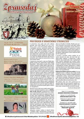 Prosincové číslo Zpravodaje městečka pod Skalkou přináší vánoční slovo mníšeckého faráře P. Jana Dlouhého, přehled svátečních bohoslužeb, rozhovor s režisérkou filmu o Kájovi Maříkovi Sylvií Kudláčovou a reportáž z premiéry filmu, další díl seriálu Poznáváme krásy Mikroregionu Mníšecko (Nová Ves pod Pleší), rozhovor s vedoucí přírodovědných oddílů Věrou Hanouskovou a mnoho dalších zajímavostí.