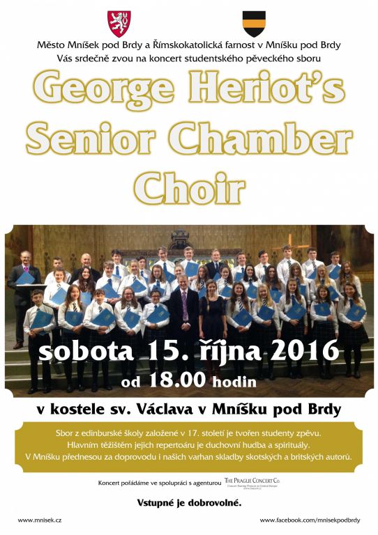 Město Mníšek pod Brdy a Římskokatolická farnost v Mníšku pod Brdy Vás zvou na koncert studentského pěveckého sboru ze Skotska.
