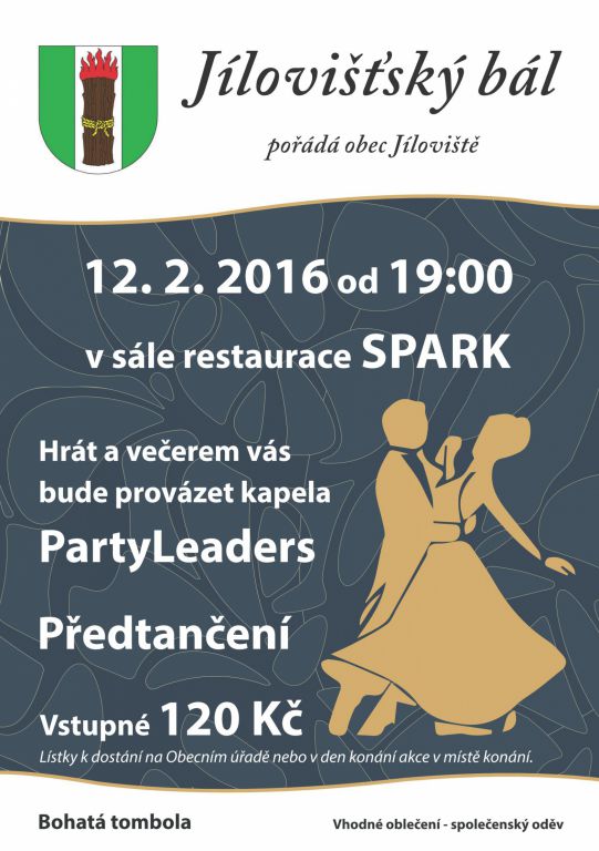 Pozvánka na bál s kapelou PartyLeaders do sálu restaurace SPARK v Jílovišti