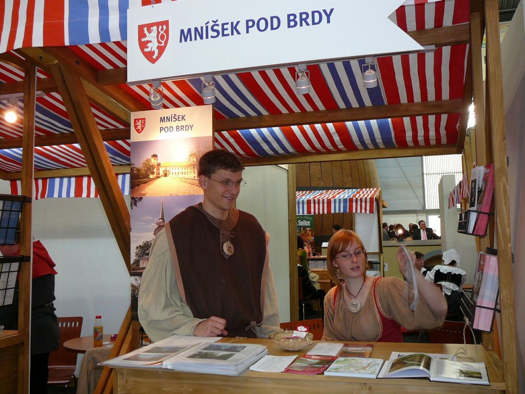 V mníšeckém stánku byly k dispozici nové informační materiály města (dva typy barevných letáků doplněné vizitkovou kartičkou ve stejné výtvarné podobě, leták s popisem naučné stezky, trhací mapa i leták prezentující Státní zámek Mníšek pod Brdy). Doplňkové materiály pro odbornou i laickou veřejnost (přehled hlavních kulturních akcí roku 2009 a leták věnovaný Janu Šťastnému) připravilo mníšecké kulturní středisko. Návštěvníci stánku si také mohli prolistovat prezentační knihu s fotografiemi z kulturních a společenských akcí, v níž nalezli i informace o významných osobnostech „městečka pod Skalkou“, aktuální vyjádření Montánní společnosti k chystanému otevření Důlního skanzenu Skalka a další zajímavosti. Pokud si našli chvilku k zodpovězení šesti otázek humorného soutěžního kvízu, měli šanci vyhrát knihu Otomara Dvořáka a Marie Holečkové Poklady pod skálou poutníků s nádhernými barevnými fotografiemi Mníšku a okolí. Losování proběhlo ihned po skončení veletrhu, v pondělí 19. ledna, třem vylosovaným výhercům byly knížky zaslány poštou.