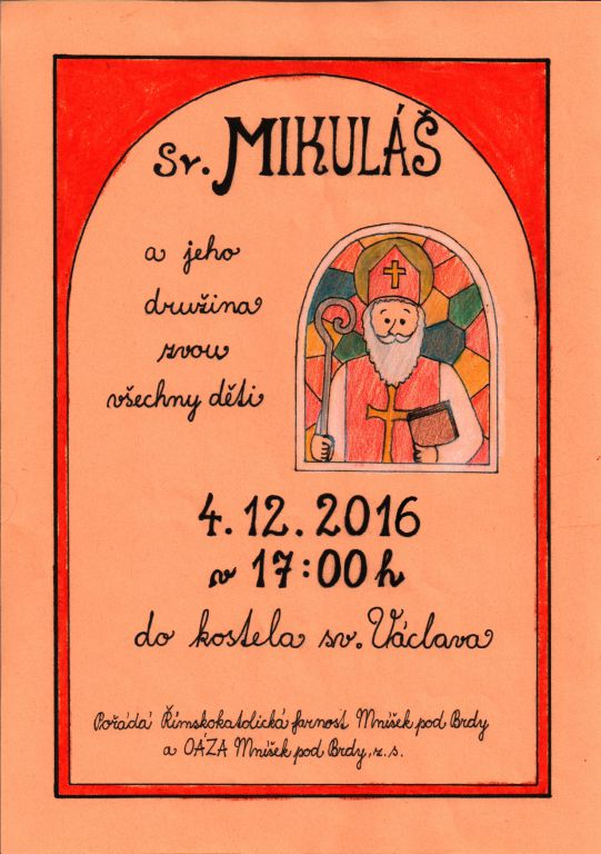 Sv. Mikuláš a jeho družina zvou všechny děti do kostela sv. Václava.