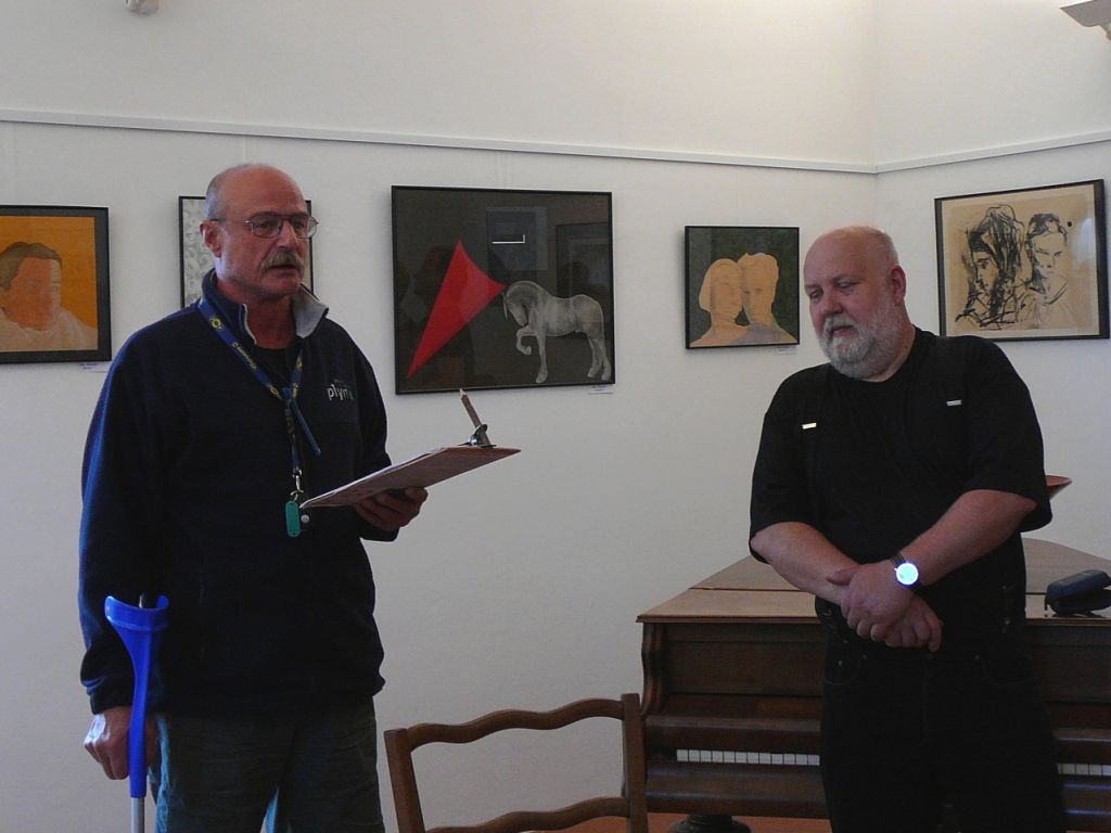 Bylo krásné, teplé, sluncem prozářené odpoledne – a klášter na Skalce praskal ve švech. Na zahájení společné výstavy Jany Krausové a Františka Švancara se sešlo dobrých stopadesát návštěvníků a další dorazili ještě v průběhu vernisáže. Herec Pavel Nový uvedl oba vystavující – jeho projev byl vtipný a bezprostřední. Dobrou náladu v sále ještě umocnil David Koller s kytarou - zahrál a zazpíval tři písničky a mnozí posluchači si zpívali s ním. Vstupní chodba nabízela „tradiční“, výtvarně vyladěné pohoštění se spoustou bylinek z domácí zahrádky – a ti, kdo chtěli pokračovat, přešli pak nahoru k bufetu, kde byl připraven oheň a buřtíky k opékání....