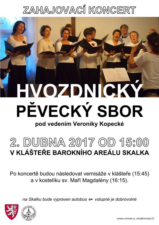 Město Mníšek pod Brdy Vás zveme zahájení výstavní sezóny na Skalce. Od 15:00 proběhne zahajovací koncert v klášteře a dále se bude pokračovat dvěma vernisážemi.